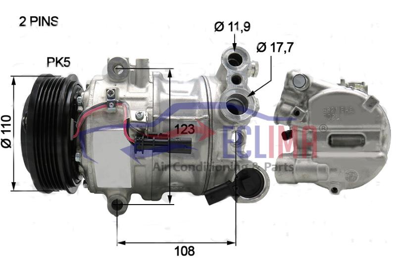 ECLIMA 122272 - COMPRESOR SANDEN PXC14 PV5 110MM 12V OPEL